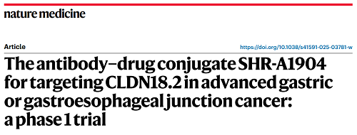 AG电子医药CLDN18.2 ADC创新药SHR-A1904治疗胃癌临床研究结果荣登Nature Medicine